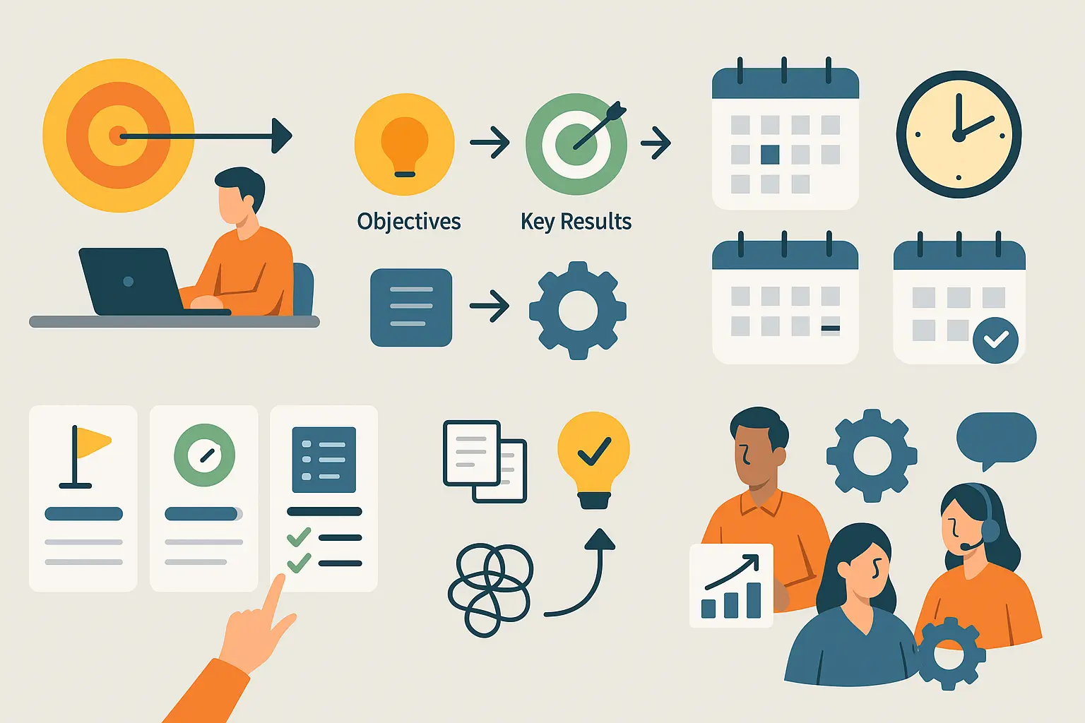 Los OKR son un sistema de alineación estratégica compuesto por: